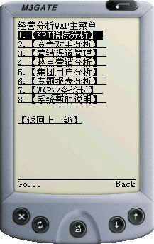 右圖為江蘇移動(dòng)鹽城分公司企業(yè)經(jīng)營分析系統(tǒng)WAP手機(jī)應(yīng)用界面。