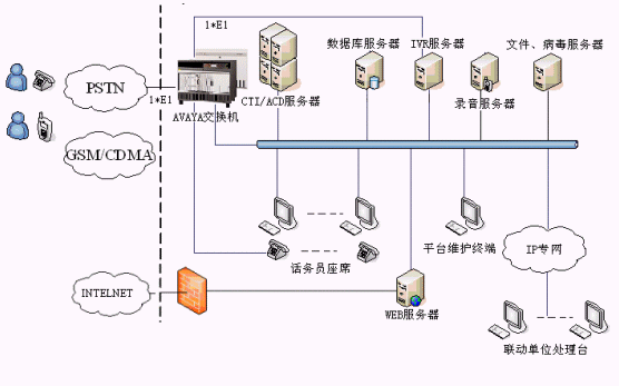 下圖是基于交換機呼叫中心的邏輯結(jié)構(gòu)圖: