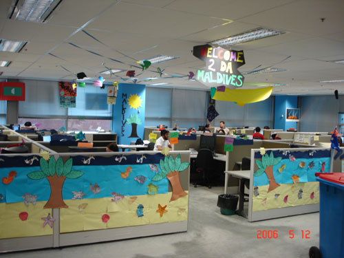 由于這種獨(dú)特的管理方式吸引了眾多的同行前來(lái)參觀,該中心特別安排了熱情的Sally負(fù)責(zé)導(dǎo)游。Sally帶我們參觀說(shuō)的第一句話就是:“我真是喜愛我們的呼叫中心,這里的年輕人富有創(chuàng)意,充滿激情,他們非常喜歡在這里工作!庇谑俏覀儏⒂^了“蜘蛛俠”,“蒙娜麗莎”,“大英帝國(guó)”,“典雅餐廳”,“熱帶公園”,“幾何世界”,“海底世界”,“白色圣誕節(jié)”等不同的Pod,實(shí)在是好像到了聯(lián)合國(guó)。