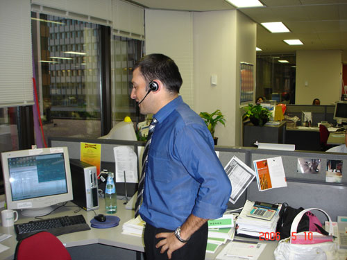 Colonial公司是一家大型的銀行業(yè)務(wù)呼叫中心,座落在悉尼市區(qū)最熱鬧的喬治大街附近,相當(dāng)于我們的上海淮海路。這里的幾百個(gè)座席分布在寫字樓的好幾個(gè)樓面,所有座席都是使用大北歐的無(wú)線耳嘜-GN9120。筆者記得上月去東京參觀HONDA的呼叫中心,那里只有不到三十個(gè)一線的座席代表使用無(wú)線耳嘜,這里則是所有人都配備了這種先進(jìn)的無(wú)線設(shè)備。筆者看到不少員工站著工作,還有少數(shù)走動(dòng)辦公,員工在座位上可以輕松轉(zhuǎn)身,隨時(shí)調(diào)整姿勢(shì),讓身體處于松弛狀態(tài),這種輕松自如想必電話線那頭的客戶也感同身受。呼叫中心的經(jīng)理Venessa告訴筆者,這里的服務(wù)內(nèi)容比較豐富,對(duì)員工的業(yè)務(wù)能力要求很高,所以他們?yōu)閱T工提供一流的工作環(huán)境以減少人員流失率,降低招聘和培訓(xùn)成本,提高客戶滿意度。