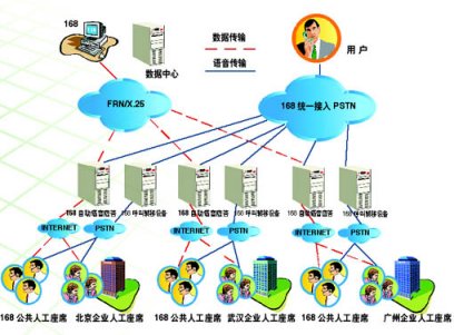 2、分布式接入服務功能:"企業(yè)客戶服務系統(tǒng)"為企業(yè)分布式的人工座席提供接入服務。當某個城市的消費者在使用168電話中自動語音應答功能時,只要按"0"號鍵,電話就會被轉(zhuǎn)到企業(yè)在的當?shù)胤⻊杖藛T座席上,由專業(yè)人員來提供服務支持。此種功能適合于在多個城市設立人工座席的企業(yè)用戶。