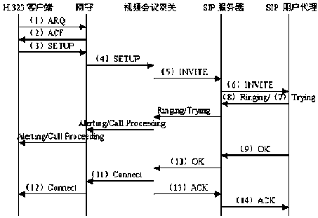 為了更好的說明視頻會議網(wǎng)關(guān)在跨協(xié)議會議系統(tǒng)中的作用和工作流程,我們以一個(gè)由H.323客戶終端發(fā)起的會議請求為例來描述視頻會議網(wǎng)關(guān)對兩種協(xié)議信令消息的處理過程(如圖2所示)。