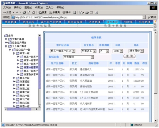 作為電信營銷服務(wù)支撐系統(tǒng),其主要功能是支撐營銷人員開展?fàn)I銷活動,并通過功能完善的考核系統(tǒng)幫助各級人員進行工作管理。本系統(tǒng)可以對KPI指標(biāo)進行靈活的設(shè)定,可以靈活定義多種參與考核的數(shù)據(jù)來源,使得各級主管能夠?qū)蛻艚M、社區(qū)(商業(yè)客戶區(qū)、農(nóng)村統(tǒng)包區(qū))的營銷服務(wù)工作進行考核評分?己酥芷诳梢酝ㄟ^參數(shù)進行設(shè)定(一般以月為單位)。