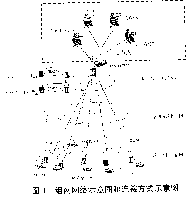 具體接入方式是通過(guò)中國(guó)聯(lián)通的光纖接入資源,實(shí)現(xiàn)國(guó)土資源部全國(guó)SDH電路的端到端光纖連接。在北京國(guó)土資源部中心節(jié)點(diǎn)引入中國(guó)聯(lián)通光傳輸電路,與聯(lián)通北京城域網(wǎng)相連,采用華為622H光傳輸系統(tǒng)設(shè)備的STM一1模塊提供155M光接口,與國(guó)土資源部的骨干路由器信道化155M接口相連,由路由器內(nèi)部完成155M到2M的拆分,從而實(shí)現(xiàn)國(guó)土資源部和其他節(jié)點(diǎn)2M電路的互連,除可支持目前所需的50個(gè)2M數(shù)字電路的廣域組網(wǎng)(最大支持63個(gè)2MB數(shù)字電路的廣域網(wǎng)).同時(shí)可滿足其將來(lái)擴(kuò)容需求,提供多個(gè)l55M接口。其組網(wǎng)網(wǎng)絡(luò)示意圖和連接方式如圖1。