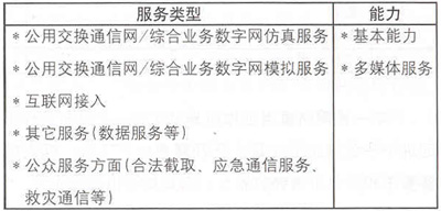 發(fā)布文件1中的服務(wù)類型及相關(guān)能力見(jiàn)表1。