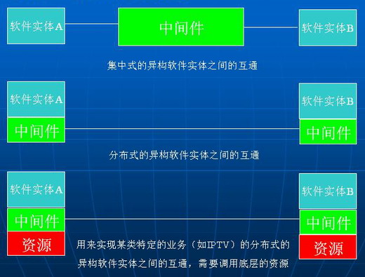 應(yīng)用程序借助這種軟件在不同的技術(shù)之間共享計(jì)算資源和網(wǎng)絡(luò)資源;