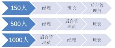 當(dāng)員工人數(shù)到達(dá)500人的時(shí)候,班長往往有30位左右。很多經(jīng)理已經(jīng)不能夠?qū)γ课话嚅L有足夠的了解,更不要說去認(rèn)識(shí)大部分員工。這個(gè)時(shí)候,經(jīng)理對(duì)班長的比例過寬,需要強(qiáng)化后臺(tái)管理員的角色。比如排班、績效、質(zhì)量管理(而不僅是評(píng)估)、信息分析(數(shù)據(jù)和報(bào)告)、行政、培訓(xùn)等工作中,這些管理輔助角色都在逐漸強(qiáng)化。而每一個(gè)后臺(tái)管理者可能成了經(jīng)理的直接下屬,他們起草的流程和制度,來由經(jīng)理決策。某種程度上說,他們比班長的影響力更大,因?yàn)榘嚅L還是影響著12-20人。有時(shí)候后臺(tái)管理員也決定了班長的時(shí)間精力分配,那是班長最寶貴的資源。那么誰是管理者呢?首先是經(jīng)理,其次是后臺(tái)管理員,最后才是班長。
