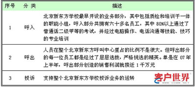北京新東方學(xué)校呼叫中心在1999年還只是3部咨詢電話,不到10名工作人員。到今年,已經(jīng)擁有36個(gè)座席以及72名經(jīng)過(guò)專業(yè)培訓(xùn)的座席代表,平均每日接聽(tīng)3500通電話。