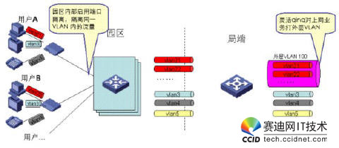 不同業(yè)務(wù)的VLAN具體劃分是通過(guò)家庭網(wǎng)關(guān)來(lái)實(shí)現(xiàn)的。