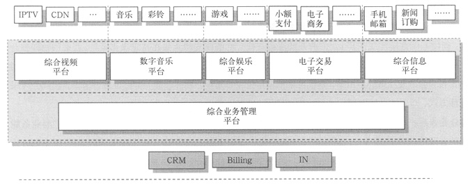 。3)對各增值業(yè)務(wù)缺乏統(tǒng)一分析、規(guī)劃、運(yùn)營機(jī)制。由于用戶習(xí)慣、市場發(fā)展、增值業(yè)務(wù)特征等使各增值業(yè)務(wù)平臺功能在不同時(shí)期開展情況不同,需要對各平臺用戶信息、業(yè)務(wù)信息進(jìn)行統(tǒng)一提取、分析,用以幫助業(yè)務(wù)功能整體架構(gòu)部署、靈活調(diào)整業(yè)務(wù)發(fā)展策略和建設(shè)策略。