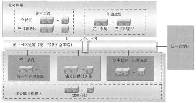 。4)應(yīng)用能力提供區(qū):統(tǒng)一建設(shè)業(yè)務(wù)應(yīng)用實(shí)現(xiàn)的基礎(chǔ)通道系統(tǒng)(包括業(yè)務(wù)能力提供系統(tǒng)、業(yè)務(wù)能力接口網(wǎng)關(guān)),并提供統(tǒng)一接口以實(shí)現(xiàn)業(yè)務(wù)應(yīng)用的靈活調(diào)用。
