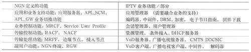 表1NGN業(yè)務(wù)功能和IPTV業(yè)務(wù)功能的關(guān)系