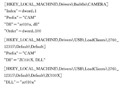 系統(tǒng)自動(dòng)加載驅(qū)動(dòng)程序時(shí),首先要將驅(qū)動(dòng)程序復(fù)制到\WINDOWS文件夾下,然后向注冊(cè)表中寫入攝像頭的驅(qū)動(dòng)信息:
