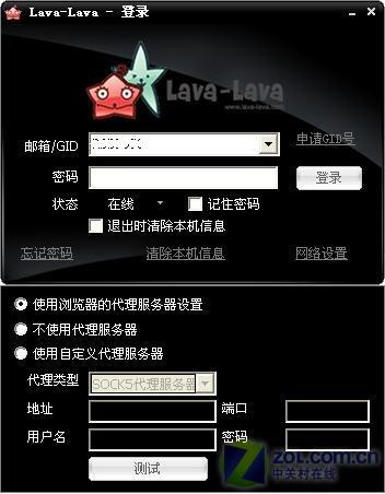 登陸界面除了標準的帳號登錄功能以外,Lava-Lava的設置比百度Hi豐富一些,網絡設置使局域網用戶可以方便地進行代理服務器項目的設置,還可以選擇“退出時清理本機消息”保護自己的隱私。百度Hi的設置則是清新簡潔。(圖5、圖6)