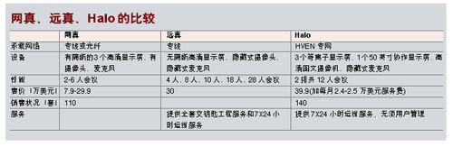 惠普的Halo工作室系統(tǒng)強調(diào)可用于企業(yè)遠(yuǎn)程模擬面對面業(yè)務(wù)會議。通過Halo連接,每個Halo工作室可支持會議桌前排六人,第二排三至六人,最多12人的會議規(guī)模。每個工作室有三臺等離子顯示器,參會人員能夠看到與本人同樣大小的圖像。另外,參會者還可使用一個安裝在等離子顯示器上方的50英寸的協(xié)作屏幕,與其他Halo工作室中的人員共享其筆記本電腦中的文件與數(shù)據(jù)。工作室還包括一個高清圖文攝像機,可用于拍攝桌上的物品并顯示在協(xié)作顯示器上,真實呈現(xiàn)色彩、陰影與細(xì)微之處。同時配備的電話讓與會者可以與Halo工作室外的人員聯(lián)系。工作室配備了廣播質(zhì)量的音頻與照明設(shè)施,參會者可以使用屏幕上簡便的用戶界面,通過點擊鼠標(biāo)開始協(xié)作。一個復(fù)雜的軟件控制系統(tǒng)將確保各個Halo工作室輕松、無縫地協(xié)同工作。