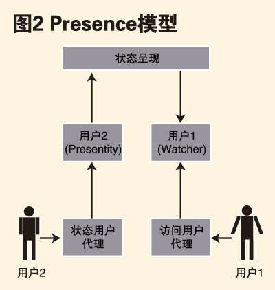Presence用以傳達(dá)用戶狀態(tài)以及用戶通過一組設(shè)備進(jìn)行通信的能力,如:聯(lián)機、忙碌、離開、脫機等狀態(tài)。這些狀態(tài)信息反映出與該用戶與其他用戶實現(xiàn)通信的可能性。