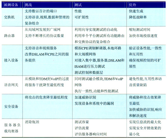 此外,思博倫還可以提供安全風險管理解決方案。服務商和網(wǎng)絡設備制造商可以生成真實的流量,并將其引入網(wǎng)絡中,然后監(jiān)視各種“惡意代碼”對單個設備和總體網(wǎng)絡性能造成的影響,從而對網(wǎng)絡和設備中可能存在的漏洞進行周全的測試。表1為思博倫基礎設施測試的挑戰(zhàn)和優(yōu)勢。