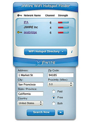 當(dāng)你需要進(jìn)行緊急無(wú)線接入時(shí),有一種方便、免費(fèi)能找到附近熱點(diǎn)的辦法。運(yùn)行這個(gè)程序并輸入你所在的位置,這個(gè)程序?qū)⒘谐龈浇乃袩狳c(diǎn)。它將幫你搜索到付費(fèi)的或免費(fèi)的熱點(diǎn),并保持程序數(shù)據(jù)庫(kù)的頻繁更新。