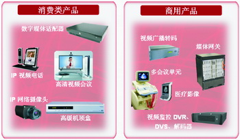 轉(zhuǎn)碼技術(shù)將用來(lái)滿足更廣泛領(lǐng)域的數(shù)字視頻多制式轉(zhuǎn)換需求,不僅應(yīng)用于包括視頻廣播轉(zhuǎn)碼、媒體網(wǎng)管、多會(huì)議單元 、醫(yī)療影響和視頻監(jiān)控等商用產(chǎn)品中,而且也將用于包括數(shù)字媒體適配器、高清視頻會(huì)議終端、高級(jí)數(shù)字機(jī)頂盒、IP視頻電話和高清網(wǎng)絡(luò)攝像機(jī)等消費(fèi)類產(chǎn)品。如圖1所示,在商用產(chǎn)品中轉(zhuǎn)碼技術(shù)支持更高密度非常必要,而在消費(fèi)類產(chǎn)品中轉(zhuǎn)碼技術(shù)的單片高性價(jià)比則必需。