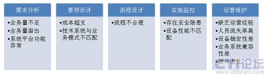 要領(lǐng)設(shè)計(jì)階段風(fēng)險:在該階段,企業(yè)將決定呼叫中心的建設(shè)規(guī)模、技術(shù)設(shè)備、組織架構(gòu)及運(yùn)營模式等一系列環(huán)節(jié)。此過程中,最容易且是最嚴(yán)重的風(fēng)險在于成本估算的差異和技術(shù)系統(tǒng)與業(yè)務(wù)模式的不匹配。多數(shù)企業(yè)在呼叫中心建設(shè)成本估算時由于經(jīng)驗(yàn)的缺乏無法全面預(yù)測建設(shè)成本,特別是對運(yùn)營費(fèi)用的把握常常相差數(shù)倍。因此,實(shí)際建設(shè)成本過分超出預(yù)算成為困擾項(xiàng)目執(zhí)行者的一大難題。這就使得企業(yè)對呼叫中心的投入猶如一個無底洞,一投再投,嚴(yán)重影響了企業(yè)資金鏈的正常運(yùn)轉(zhuǎn),也為呼叫中心的“成本”角色加重了色彩。此外,很多公司或者系統(tǒng)集成商因?yàn)槌跏纪度氤杀、建設(shè)經(jīng)驗(yàn)或者運(yùn)營經(jīng)驗(yàn)等方面的限制,在呼叫中心建設(shè)初期很重視技術(shù)平臺的建設(shè),但忽視了運(yùn)營思想在系統(tǒng)方案中的體現(xiàn),在系統(tǒng)建成后,再去完善運(yùn)營系統(tǒng),這樣極大地增加了呼叫中心的運(yùn)營和管理成本,也影響到管理效率。