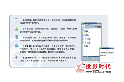 Center運營架構為基礎,有效整合了企業(yè)的如電話、傳真、手機、短信、E-mail、即時通訊等各種常用的通信設備和媒體應用,并進行統(tǒng)一管理、計劃及協(xié)同,是一套集即時通訊、網(wǎng)絡電話、點對點會議、多方視頻會議、遠程教學、遠程監(jiān)控、組織結構等為一體的桌面融合辦公系統(tǒng),能夠全面滿足企業(yè)遠程的日常交流、會議培訓、協(xié)同辦公、商務談判、指揮調度、安全保衛(wèi)等各種需求。