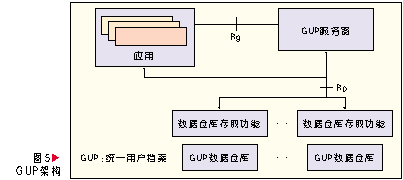 GUP中一個(gè)用戶相關(guān)的數(shù)據(jù)由多個(gè)數(shù)據(jù)組件構(gòu)成,每個(gè)組件又可以包含多個(gè)數(shù)據(jù)單元。在網(wǎng)絡(luò)中用戶數(shù)據(jù)每個(gè)數(shù)據(jù)組件只有一個(gè)主實(shí)例,但是可以有多個(gè)復(fù)制實(shí)例。用戶數(shù)據(jù)以組件為單元可以存放在不同的網(wǎng)絡(luò)實(shí)體中,應(yīng)用可以通過統(tǒng)一的訪問入口以標(biāo)準(zhǔn)接口訪問所有授權(quán)的數(shù)據(jù),這個(gè)入口功能由GUP