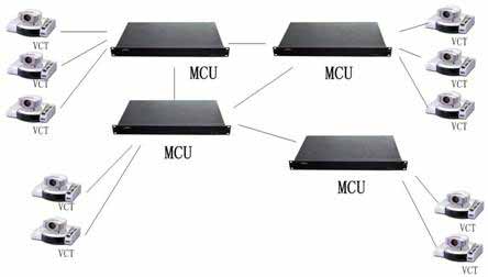 多MCU連接星型組網(wǎng)結構見圖所示,其中VCT是視頻會議終端VideoConferenceTerminal的縮寫