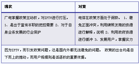 IPTV的發(fā)展,在全球而言,都是一個涉及到政策和業(yè)務(wù)的發(fā)展難題,在政策上,介于有線和通信之間的IPTV,成為了雙方博弈的利益焦點,而在中國這樣的特殊國情下,更是格外突出。