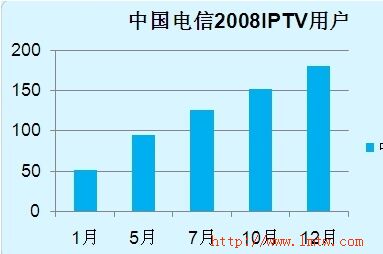 從08年初的51萬用戶到年末的180萬,中國電信IPTV即使面臨政策的限制,仍獲得了極大的發(fā)展。IPTV作為中國電信的戰(zhàn)略新興業(yè)務(wù),作為中國電信切入視頻服務(wù)領(lǐng)域、帶動寬帶業(yè)務(wù)持續(xù)發(fā)展的重要種子業(yè)務(wù),其價值正被日益認可。