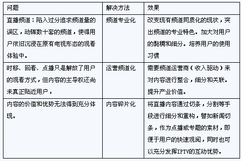 IPTV發(fā)展中,傳統(tǒng)視頻業(yè)務(wù)既是切入點,同時也是業(yè)務(wù)收入的重要來源。但目前視頻業(yè)務(wù)的價值還未得到充分體現(xiàn);有詢(yōu)勢還未得到充分挖掘。
