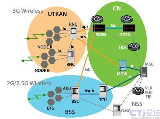 (RNC) 這一元素。在 3G UMTS 網絡中,RNC 可執(zhí)行無線電資源管理、移動管理和加密功能,它可通過媒體網關連接至電路交換核心網絡,實現電路交換語音服務,此外,它還可連接至數據包交換核心網絡中的