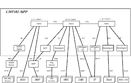 Provider)的交易請求,根據(jù)用戶的賬戶設(shè)置情況,與本地數(shù)據(jù)庫(或銀行、或BOSS系統(tǒng))交互,完成對用戶支付賬戶的扣費操作;業(yè)務(wù)受理部分MPSU:完成業(yè)務(wù)受理的功能,處理管理員、營業(yè)廳操作員、或用戶的業(yè)務(wù)管理請求,進(jìn)行相應(yīng)查詢、配置或計算,并返回結(jié)果;代理部分Agent,例如:WWWAgent,BankAgent等負(fù)責(zé)與各個外部實體的通信;另外,系統(tǒng)還應(yīng)有輔助模塊用來完成系統(tǒng)各進(jìn)程的守護(hù)、監(jiān)視、控制、以及系統(tǒng)性能數(shù)據(jù)的采集功能。