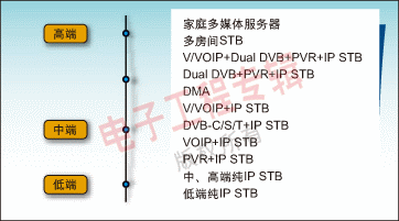 標清(SD)對于大眾市場來說是一個合乎邏輯的選擇。ODM廠商不管選用哪種操作系統(tǒng)(Windows CE或Linux)都能與NXP公司的IP-STB平臺相結(jié)合,為本地市場生產(chǎn)所期望的產(chǎn)品。