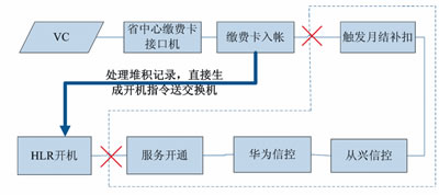 以圖4智能網(wǎng)充值開機(jī)流程為例,其經(jīng)歷的步驟繁多,特別是其中信控判斷邏輯復(fù)雜,程序處理耗時(shí)多,是引起月結(jié)用戶充值到賬但無(wú)法及時(shí)開機(jī)的關(guān)鍵環(huán)節(jié)。站在服務(wù)用戶的角度,最直接的應(yīng)急方式便是提取已繳費(fèi)入賬的號(hào)碼直接送HLR施工開機(jī),對(duì)于存在欠費(fèi)可能的用戶,其開機(jī)狀態(tài)在正常流程進(jìn)行修復(fù),但對(duì)于充值后仍欠費(fèi)的用戶,其開機(jī)狀態(tài)將在經(jīng)歷過信控后自動(dòng)被修改為停機(jī)。