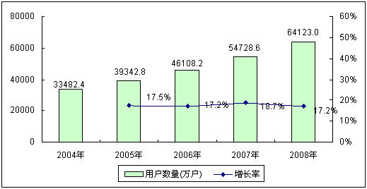 中國(guó)移動(dòng)通信產(chǎn)業(yè)發(fā)展可以追溯到1987年,當(dāng)時(shí)中國(guó)確定了以TACS制式作為模擬制式蜂窩移動(dòng)電話的標(biāo)準(zhǔn),首次為中國(guó)移動(dòng)通信技術(shù)產(chǎn)業(yè)化發(fā)展奠定了基礎(chǔ)。隨著通信技術(shù)的進(jìn)步,數(shù)字化的GSM移動(dòng)通信網(wǎng)絡(luò)制式快速取代了原有的TACS制式。進(jìn)入2000年以后,伴隨中國(guó)改革開放的深入和經(jīng)濟(jì)的進(jìn)一步轉(zhuǎn)型,移動(dòng)通信技術(shù)得到迅猛發(fā)展,手機(jī)普及率得到迅速提高。2004~2008年,中國(guó)移動(dòng)電話用戶數(shù)量每年都保持著17%以上的快速增長(zhǎng),截止到2008年底,中國(guó)移動(dòng)電話用戶數(shù)量已經(jīng)達(dá)到6.41億戶,與2004年相比增長(zhǎng)了近一倍。