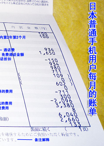 到底在購買各種套餐之后,用戶每個月使用多少錢呢?下面是一份普通的日本手機用戶每個月收到的賬單,通過這份賬單我們清晰看出3G資費的構成。在這里,我們清晰看到沒有漫游費,如果沒有折扣,該用戶至少需要付近3萬日元的費用,實際上,最后用戶需要繳納的費用是6064日元,其中還包含了購買新款手機3380日元的費用,實際上產生的話費是2660日元。