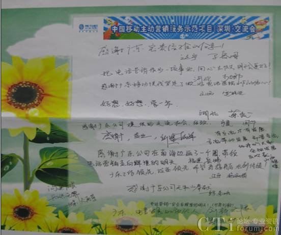 悄悄走進(jìn)掌聲環(huán)繞的會(huì)議室,卻看到許多張陌生的面孔,一個(gè)個(gè)聚精會(huì)神的參會(huì)者面前的桌上依次擺著:上海移動(dòng)、河北移動(dòng)、湖北移動(dòng)、四川移動(dòng)……這里不是集團(tuán)公司的某次會(huì)議現(xiàn)場(chǎng),而是由廣東移動(dòng)客服中心承辦、全國(guó)12個(gè)省市共計(jì)20位電話營(yíng)銷領(lǐng)域的主管和專家參加的全國(guó)電話營(yíng)銷示范交流會(huì)啟動(dòng)儀式現(xiàn)場(chǎng)。
