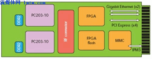 圖2:picoChip PC9608/9小型基站設(shè)計(jì)基于使用248或273迷你處理器的PC203 picoArray,可通過大量并行操作實(shí)現(xiàn)LTE的技術(shù)指標(biāo)。