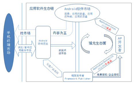 Android終端領主將在Android應用軟件市場起到風向標、領導者的作用。他們就是Android終端領主,這個領域的超級大鱷。他們通過各種方式途徑將框架軟件成品最終送達用戶,在用戶的硬件上得以呈現(xiàn),通過Android終端領主,框架軟件生態(tài)才有價值的循環(huán)回報。價值產生的市場就是眾多硬體廠家、電信運營商家的應用商城。