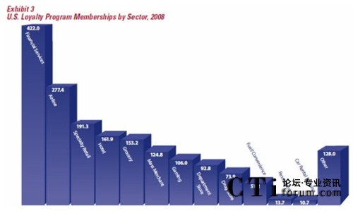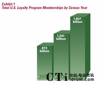 據(jù)權(quán)威的客戶忠誠度研究機(jī)構(gòu)COLLOQUY在2009出版的一份報(bào)告,2008年底,全美客戶忠誠度計(jì)劃的參與人次達(dá)到18.07億,平均每個(gè)美國家庭參與了14.1個(gè)忠誠度計(jì)劃,相較2006年底的13.41億參與人次,共增了了24.73%(連續(xù)兩年環(huán)比增長12%/年),而同期美國的GDP增長僅為2.2%。從這一點(diǎn)上看,美國企業(yè)對(duì)忠誠度營銷的熱情不減,盡管忠誠度營銷在美國已相當(dāng)成熟,但美國企業(yè)仍然把它當(dāng)作是營銷的重要工具。