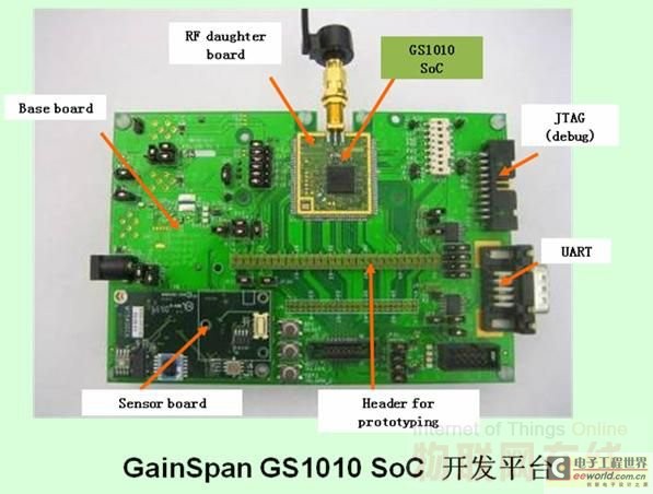 為了幫助客戶縮短開發(fā)周期, GainSpan還提供了一整套包括SDK、評(píng)估平臺(tái)、開發(fā)平臺(tái)在內(nèi)的軟硬件工具。其軟件棧包括了各種I/O驅(qū)動(dòng)和WLAN固件、RTOS、網(wǎng)絡(luò)棧、系統(tǒng)服務(wù)、WLAN和I/O服務(wù)模塊、各種應(yīng)用編程接口以及應(yīng)用軟件。Parmar聲稱,GS1010的SDK能夠幫助工程師節(jié)約10~12個(gè)月的開發(fā)時(shí)間。而硬件開發(fā)平臺(tái)則能夠支持溫度、濕度、光敏、壓力、加速度等各種傳感器,并預(yù)留了客戶自選的傳感器接口和調(diào)試以及程序燒錄接口。