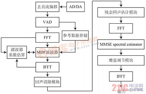 2.2 結(jié)合噪音消除和靜音檢測的回聲處理系統(tǒng)
