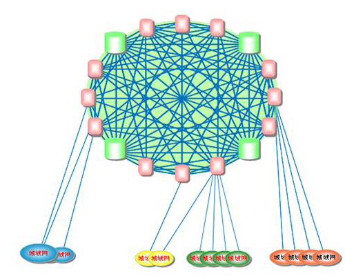 網(wǎng)絡(luò)扁平化概念就適時(shí)提出來了,F(xiàn)在,網(wǎng)絡(luò)扁平化已經(jīng)是運(yùn)營(yíng)商網(wǎng)絡(luò)建設(shè)的主要指導(dǎo)思想了。特別是中國(guó)聯(lián)通,由于歷史原因造成的骨干網(wǎng)節(jié)點(diǎn)并不夠多導(dǎo)致其南北方網(wǎng)絡(luò)品質(zhì)存在一定差異。而扁平化后能很好的解決此問題。下圖為網(wǎng)絡(luò)扁平化示意圖。