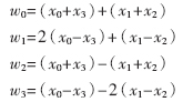 對于每列變換,需要進(jìn)行8次加法和2次移位運(yùn)算,而行變換則可根據(jù)矩陣轉(zhuǎn)置的性質(zhì)ABT=(BAT)T,將經(jīng)過列變換后的結(jié)果矩陣先進(jìn)行轉(zhuǎn)置,再采用相同的變換形式運(yùn)算。這樣對4×4點(diǎn)數(shù)據(jù)做一次變換,只需通過8×8次加法和2×8次移位運(yùn)算便可完成。