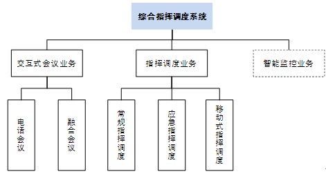 基于融合通信平臺的綜合指揮調(diào)度系統(tǒng)可分為交互式會議業(yè)務、指揮調(diào)度業(yè)務和智能監(jiān)控業(yè)務,而交互式會議業(yè)務分為電話會議和在電話會議基礎上升級的融合會議產(chǎn)品兩種,指揮調(diào)度業(yè)務分常規(guī)指揮調(diào)度、應急指揮調(diào)度和移動式指揮調(diào)度三種。