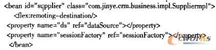 業(yè)務(wù)層對象用于實現(xiàn)CRM系統(tǒng)業(yè)務(wù)方法,其采用面向接口設(shè)計原則,由Spring管理實現(xiàn)類對象,并注入持久層的HibernateSessionFactory對象,業(yè)務(wù)對象配置代碼如下: