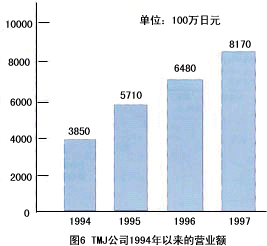 ——該公司成立于1992年,現(xiàn)在是日來(lái)第4大電話營(yíng)銷專業(yè)公司。該公司是從原福武書店的電話中心獨(dú)立出來(lái)的。福武書店的”進(jìn)研學(xué)習(xí)會(huì)”(類似于中國(guó)的函授大學(xué))在日本全國(guó)擁有401萬(wàn)會(huì)員。對(duì)這些會(huì)員的客戶服務(wù)目前占TMJ業(yè)務(wù)的50%,盡管TMJ成立時(shí)間不長(zhǎng)。但由于積極引進(jìn)先進(jìn)技術(shù)(CTI,IVR,ACD,預(yù)撥號(hào))和先進(jìn)的管理方式,發(fā)展非常迅猛。1997年?duì)I業(yè)額達(dá)到81億7千萬(wàn)日元,總席位有1,500個(gè),外線數(shù)3,00O條,登錄業(yè)務(wù)代表達(dá)4,350人,該公司擁有6個(gè)呼叫中心(東京3個(gè),大販、名古屋、岡山各1個(gè)),每月平均呼入電話63萬(wàn)個(gè),呼出電話60萬(wàn)個(gè)。該公司的主要業(yè)務(wù)有:訂購(gòu)、預(yù)約受理、促銷活動(dòng)、銷售支持、客戶服務(wù)中心,其中面向消費(fèi)者/面向企業(yè)的比例為4∶1。圖6為TMJ公司1994年以來(lái)的營(yíng)業(yè)額。