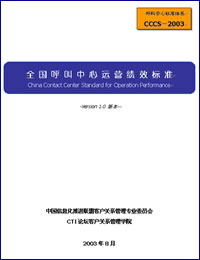 《全國呼叫中心運(yùn)營績效標(biāo)準(zhǔn)》(China Contact Center Standard for Operation Performance,簡稱"CCCS-OP-2003標(biāo)準(zhǔn)"),是由CTI論壇客戶關(guān)系管理學(xué)院負(fù)責(zé)策劃和起草,并聯(lián)合該領(lǐng)域內(nèi)具有代表性的客戶服務(wù)提供商、運(yùn)營商一起同心協(xié)力,站在行業(yè)發(fā)展的最前沿,共同創(chuàng)建的客戶服務(wù)及呼叫中心行業(yè)運(yùn)營標(biāo)準(zhǔn),并最終由信息產(chǎn)業(yè)部中國信息化推進(jìn)聯(lián)盟客戶關(guān)系管理專業(yè)委員會發(fā)布實施的行業(yè)標(biāo)準(zhǔn)。該標(biāo)準(zhǔn)填補(bǔ)了國內(nèi)在該領(lǐng)域的一項空白,并將帶動整個行業(yè)不斷地向前發(fā)展。