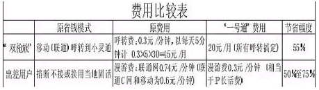 鐵通稱,“一號通”業(yè)務能讓用戶節(jié)省70% 以上的手機漫游費,“雙槍族”、“三槍族”們節(jié)省的呼叫轉移費則在一倍以上。