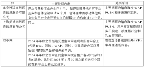 表 中國移動(dòng)處罰主要SP